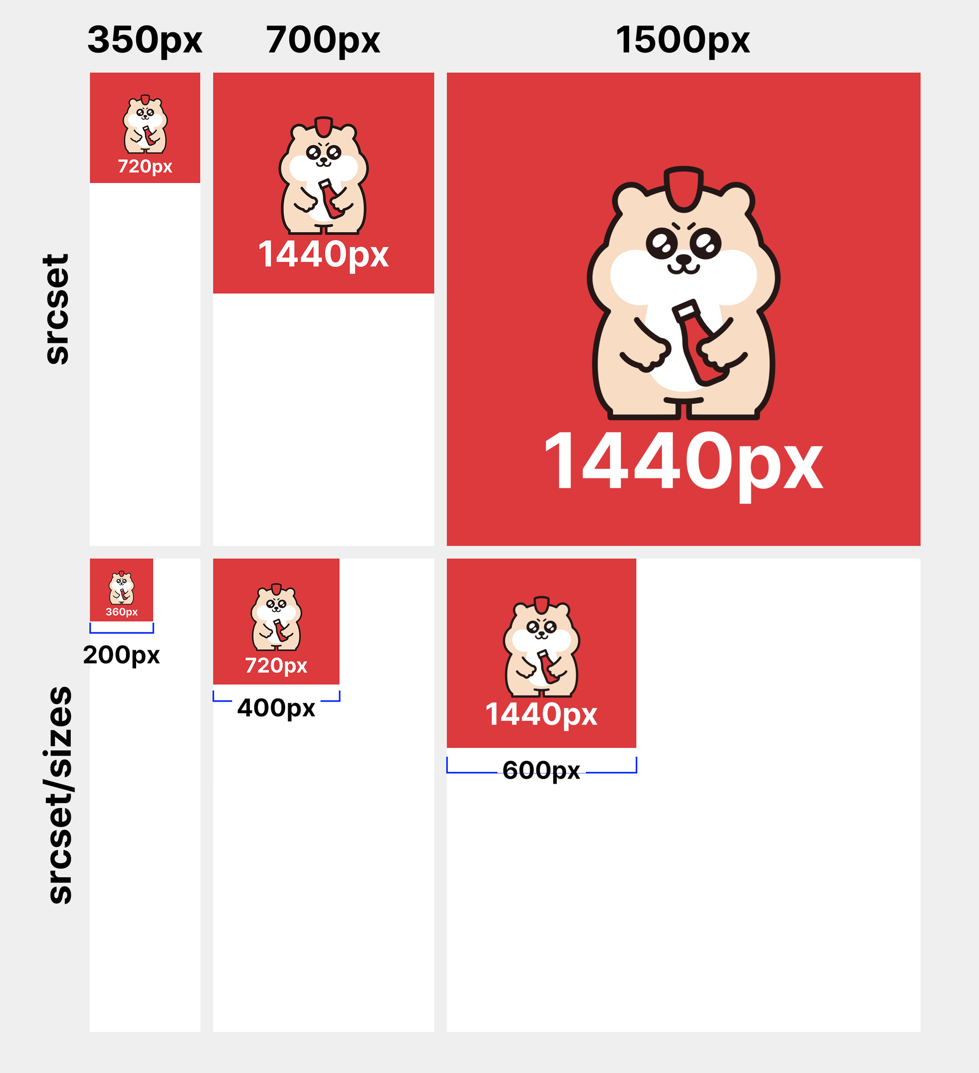 - 동일한 크기(동일한 비율, 동일한 내용)의 이미지를 다양한 디바이스의 적절한 해상도, 사이즈로 보여주고 싶을 때 사용.