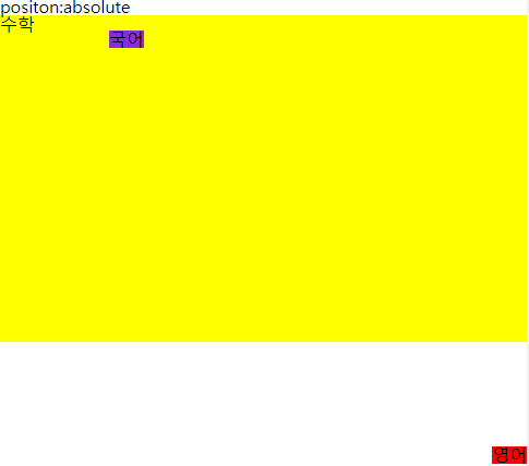 - position:absolute -> 절대적인 위치 / 부모요소를 기준으로 배치
