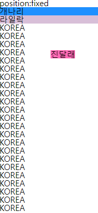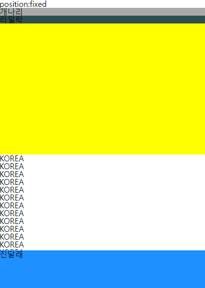 - fixed : 수직 스크롤으로 방향을 변경해도 자리는 고정