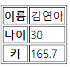 연습) 이름, 나이, 키 값들을 표작성을 해서 id=demo에 출력하시오